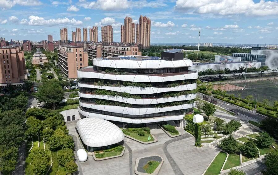 This center, a sleek building with a white facade, employs high-performance envelope structures, fresh air heat recovery systems, ground-source heat pumps and photovoltaic power generation facilities. It achieves annual savings of 1.3 million kWh in terms of primary energy consumption, reduces carbon emissions by 664 tonnes, and cuts annual operating costs by 700,000 yuan (around 98,554 U.S. dollars).