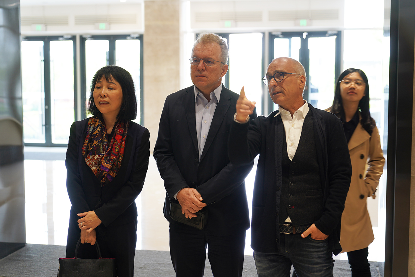Des Weiteren besuchten Martin Fleischer und seine Frau das sogenannte "Doktoren-Dorf", das hochqualifizierten Spitzenkr?ften Arbeits- und Lebensraum bietet. Im Anschluss nutzten beide die Gelegenheit, sich im Gespr?ch mit Kerstin Kaehler, Gesch?ftsf¨¹hrerin des German Enterprise Centres Qingdao, sowie Stefan Korte, Gesch?ftsf¨¹hrer der Qingdao Sophienhammer Hardware Co., Ltd., ¨¹ber Erfahrungen deutscher Unternehmen im Deutsch-Chinesischen ?kopark zu informiere