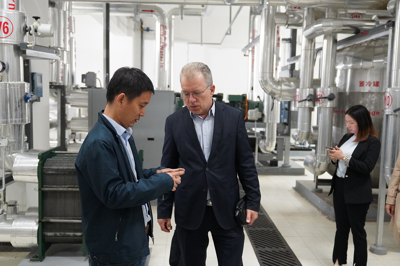 Mit dem Passivhaus-Experten Han Fei diskutierten sie ¨¹ber die Prinzipien des Passivbauens und lie?en sich erkl?ren, wie im Passivhaus-Technikzentrum die auf Geothermie basierende W?rmeversorgung erfolgt.