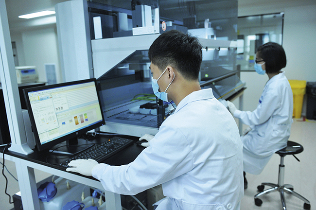 Ruiyi hat ebenfalls sofort begonnen, Test-Kits zu entwickeln, als klar war, was auf die chinesische Gesellschaft zurollt. Die ersten Kits wurden bereits am 21. Januar nach Wuhan geschickt, erzählt Dai Xingchen, insgesamt 10.000. „Mit einem Kit können 24 Patienten getestet werden“, sagt sie. Da die Regierung gefordert hat, die Anstrengungen zur Eindämmung der Epidemie zu intensivieren und kurzfristig noch vollkommenere Methoden zur Identifizierung von Erkrankten zu haben, wurden in der Forschung und Entwicklung die Ferien abgesagt, um Reagenzien zu entwickeln, die es noch sicherer machten, bei der Untersuchung der Rachen-Abstriche Virenträger herauszufiltern. Zudem musste sichergestellt werden, dass Testergebnisse in kürzester Zeit vorliegen. Noch mehr Labors wurden gebraucht, um die zunehmende Zahl an Untersuchungen durchführen zu können. Ruiyi hat seine Labors dafür selbstverständlich geöffnet.