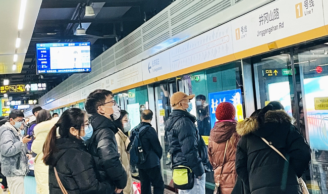 © pt U-Bahn-Station Jinggangshan Lu der am 30. Dezember 2021 eingeweihten Linie 1, die Qingdao mit der West Coast New Area verbindet. Die Strecke führt durch einen Tunnel unter der Jiaozhou-Bucht, der an seiner tiefsten Stelle 88 Meter unter dem Meeresspiegel liegt. 3.400 Kilometer neuer Metro-Strecken sollen in Chinas Städten in den kommenden fünf Jahren gebaut werden.