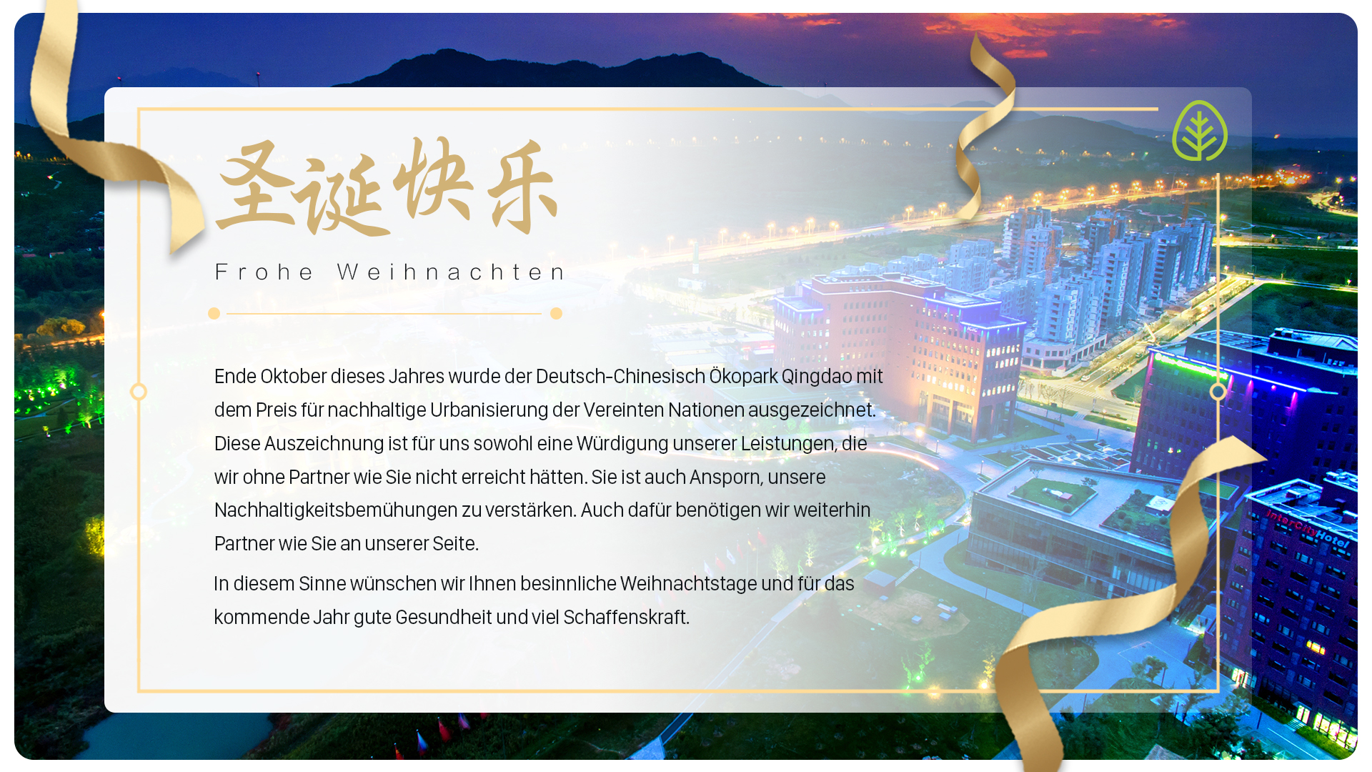 Ein f¨¹r den Deutsch-Chinesischen ?kopark erfolgreiches Jahr geht zu Ende. Unsere Erfolge verdanken wir auch Partnern wie Ihnen. An dieser Stelle danken wir Ihnen f¨¹r die Unterst¨¹tzung und w¨¹nchen zu den Feiertagen zum Jahreswechsel alles G