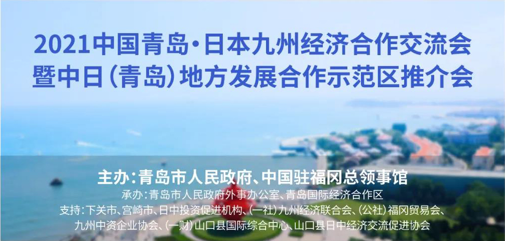 为推动青岛与日本的国际交流合作,由中国山东省青岛市人民政府、中国驻福冈总领馆主办,青岛市人民政府外事办公室、青岛国际经济合作区承办的“2021中国青岛・日本九州经济合作交流会暨中日(青岛)地方发展合作示范区推介会”将于2021年10月13日下午线上举行。