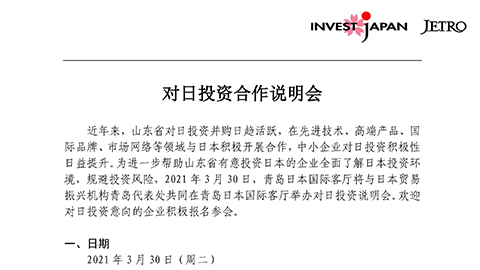 “2021年对日投资合作说明会(2021-03-30)”邀请您的参与!